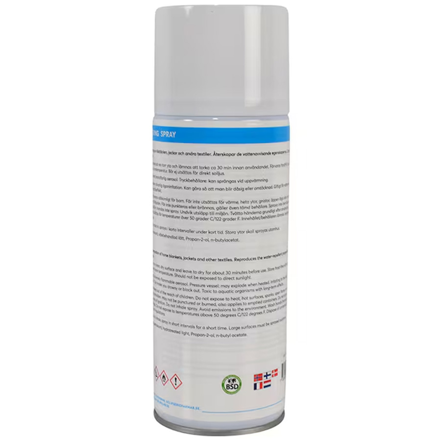 Impregneerspray die effectief de waterafstotende eigenschappen herstelt van paardendekens, jassen en andere textielsoorten. Een eenvoudige manier om de levensduur van uitrusting die aan vocht wordt blootgesteld te verlengen.