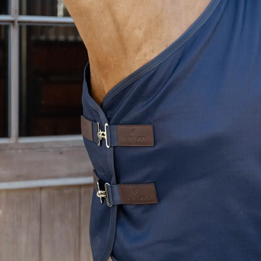 Het Stalldeken Classic kan in combinatie met een Onderdeken worden gedragen en blijft goed op zijn plaats dankzij de polyester microvezel, twee voorklips en twee surcingles.
