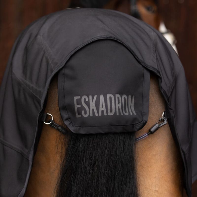 De Eskadron Rij- en Longeerdeken in zwart is een veelzijdig 2-in-1 oefendeken, ontworpen voor zowel rijden als longeren. Gemaakt van duurzaam 840 D oxfordstof, heeft het een zachte fleecelaag voor extra comfort. Met de handige rits kunt u eenvoudig van functie wisselen. De deken wordt veilig bevestigd aan het zadel of de longeersingel met behulp van InnoStraps. Het heeft een waterkolom van WP/3.000mm/H2O en een ademend vermogen van 3000g/m2/24h, waardoor het zowel waterafstotend als ademend is. Een grote staartflap en staartkoord met PVC-tunnel bieden extra bescherming. De ruglengte is 105 cm voor maat S/M en 120 cm voor maat L/XL.