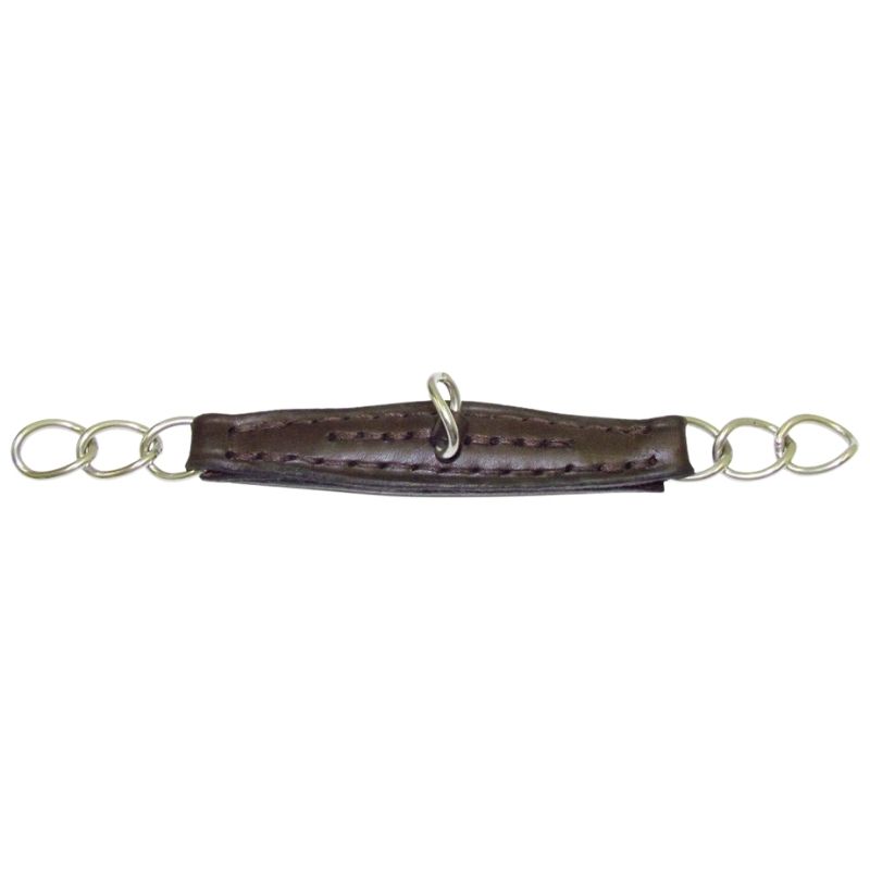 De Kindketting Leather Bruin van Bombers is een alternatief voor de klassieke kinketting en zorgt voor een zachtere inwerking. Het ontwerp bestaat uit een leren plaat in het midden met kettinguiteinden, wat zorgt voor een gelijkmatigere en mildere drukverdeling onder de kaak van het paard. Dit maakt het ideaal voor ruiters die een standaard metalen ketting te scherp vinden, terwijl de functie om het bit te stabiliseren en de hefboomwerking te reguleren behouden blijft.