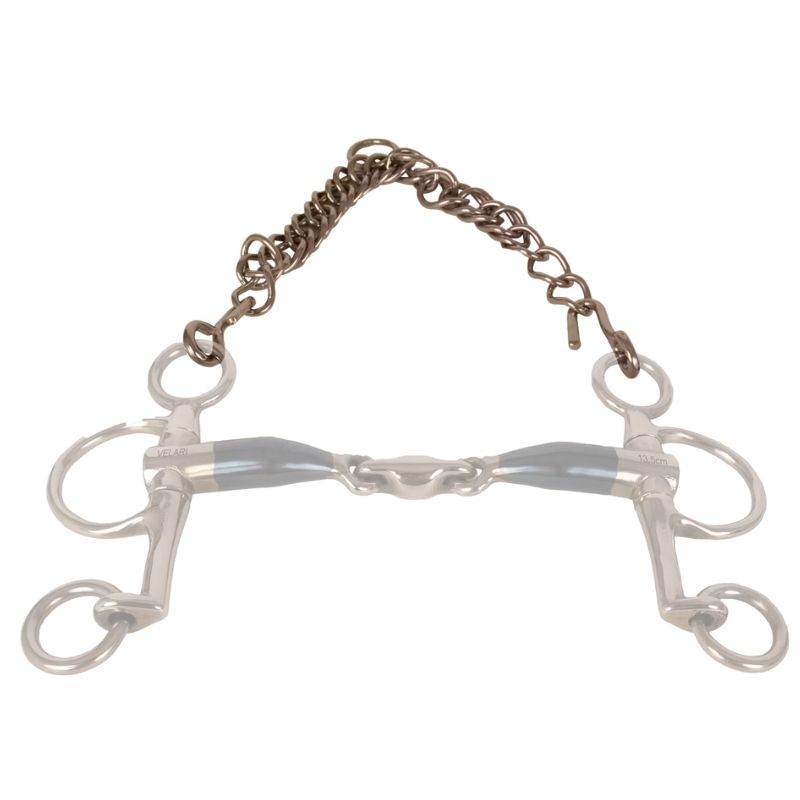 De VELARI Pelhamketting is gemaakt van roestvrij staal en ontworpen voor gebruik met een Pelhambit. Het helpt de druk gelijkmatig over de onderkaak te verdelen, wat bijdraagt aan een gebalanceerd en gecontroleerd contact. Met een lengte van 24 cm biedt deze ketting duurzaamheid dankzij het robuuste materiaal. Voor eenvoudig onderhoud, spoel indien nodig en droog na gebruik af.