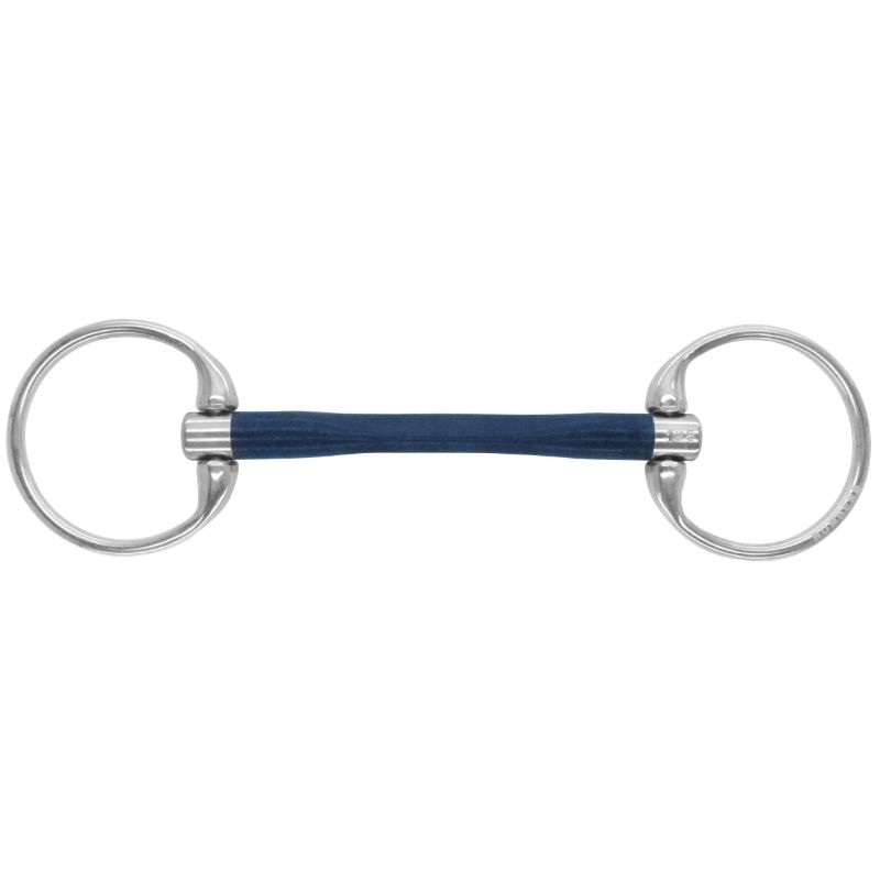 In het mondstuk bevindt zich een flexibele roestvrijstalen kern, omhuld door een speciaal ontwikkeld, niet-toxisch en UV-bestendig synthetisch materiaal dat is goedgekeurd volgens FDA-normen. Dit materiaal is ontworpen voor een gelijkmatig gevoel, hoog comfort en goede duurzaamheid. Het bit is niet geschikt voor paarden die op het bit kauwen, en schade door kauwen valt niet onder de garantie, terwijl de stalen delen onder de levenslange garantie van Bombers vallen.