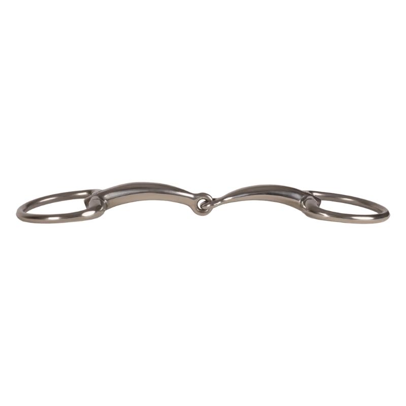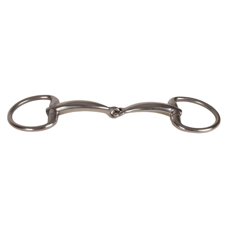 Het VELARI Olijfbit Enkelgebroken is vervaardigd uit roestvrij staal en biedt een duidelijke en directe inwerking. Met vaste ringen voor verbeterde stabiliteit en gelijkmatige teugelhulpen is het bijzonder geschikt voor paarden met een hogere gehemelte of die een gedefinieerde inwerking prefereren. Het Enkelgebroken mondstuk vormt een V-vorm bij teugeldruk, waardoor de druk gelijkmatig over de tong en lagen wordt verdeeld. Roestvrij staal biedt een neutraal en stabiel contact zonder de smaak te beïnvloeden, ideaal voor paarden die van eenvoudig en stabiel contact houden.