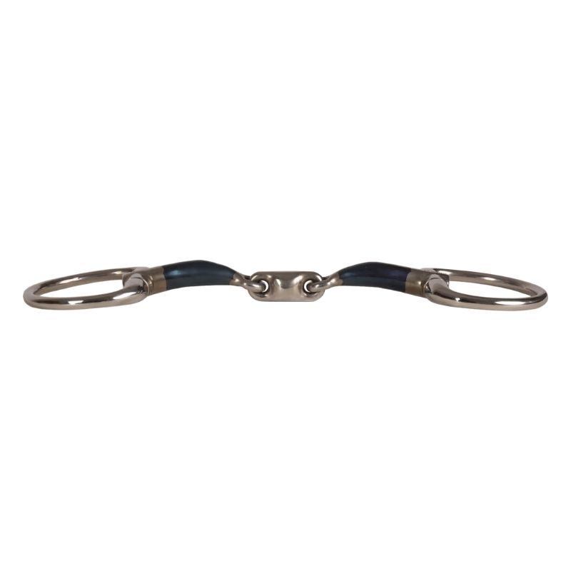 Het VELARI Olijfkop Dubbelgebroken bit is ontworpen voor een gelijkmatige drukverdeling en stabiel contact. Met een mondstuk van sweet iron dat natuurlijk oxideert, bevordert het de speekselproductie, wat helpt om het paard zacht en accepterend te houden. De vaste ringen verminderen zijwaartse bewegingen en het risico op knijpen, wat betrouwbare teugelhulpen biedt. Dit ontwerp is bijzonder geschikt voor paarden met een lagere gehemelte en die gevoelig zijn voor druk van enkelgebroken bitten. Spoel na gebruik af met warm water en droog grondig. Bewaar droog en controleer regelmatig op slijtage.