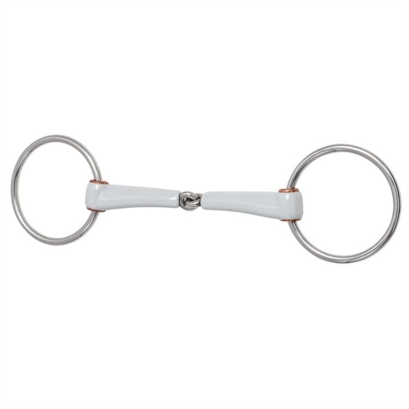 De enkelgebroken trens van Beris heeft een kunststof mondstuk met brede contactvlakken tegen de tong en lagen, wat zorgt voor een gelijkmatige drukverdeling en verhoogd comfort voor het paard. Het smallere profiel zorgt ervoor dat het bit minder ruimte in de mond inneemt en een soepel gevoel geeft. Het materiaal heeft een zeer glad oppervlak dat goed glijdt, zelfs bij paarden die minder speeksel produceren. Het mondstuk is Medium Soft, wat een gebalanceerde combinatie van stabiliteit en flexibiliteit in contact biedt. De losse ringen laten het bit vrij in de mond bewegen, wat mogelijk een dynamischere contactervaring biedt. De ringen lopen door geïntegreerde koperen hulzen, wat de wrijving vermindert en de duurzaamheid verhoogt.