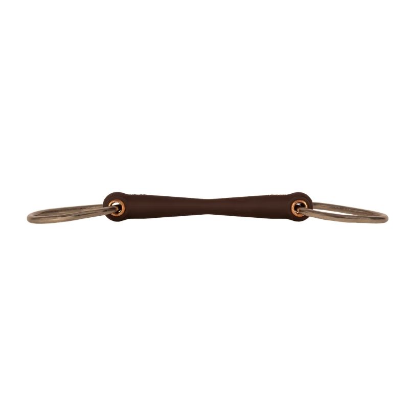 De Flex Trens met Losse Ringen van VELARI in het model Hard 20 mm is ontworpen voor paarden die een duidelijker contact nodig hebben. Gemaakt van roestvrij staal en niet-giftig thermoplastisch polyurethaan, biedt het een steviger gevoel zonder de hardheid van metaal. Het gladde, afgeronde oppervlak minimaliseert drukpunten en verdeelt de druk gelijkmatig over de lagen en de tong. Het rechte mondstuk behoudt zijn vorm onder druk, waardoor het ideaal is voor paarden die de neiging hebben om te leunen of zwaar in de hand te worden. De losse ringen zorgen voor mobiliteit en stimuleren zacht kauwgedrag, wat bijdraagt aan een zachte, responsieve contact en precieze teugelhulpen. De dikte is 20 mm. Na gebruik afspoelen met warm water, grondig drogen en op een droge plaats bewaren. Controleer regelmatig het oppervlak op slijtage.
