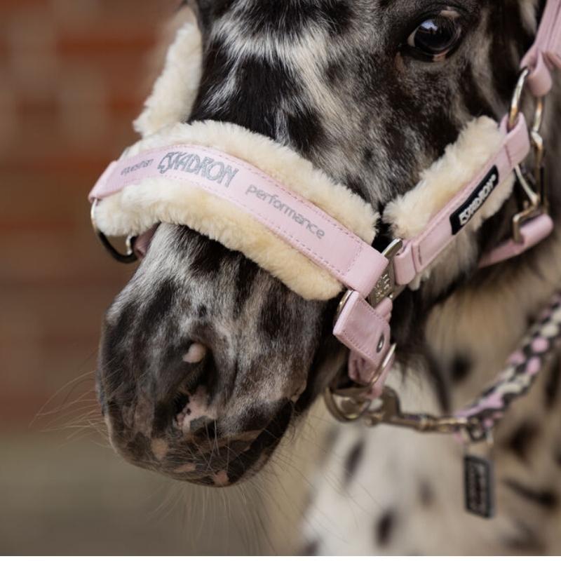 De Eskadron Halster Fauxfur Double Pin is een hoogwaardig halster in een prachtige roze kleur. Het heeft een glanzende buitenstof en een duurzaam webbing aan de binnenkant voor extra stevigheid. Het halster is uitgerust met dubbele pin gespen voor symmetrische aanpassing en kan ook onder de kin worden versteld. Het bevat onderhoudsvriendelijke, verwijderbare FauxFur voeringen op de neus, nek en bakstukken voor extra comfort.