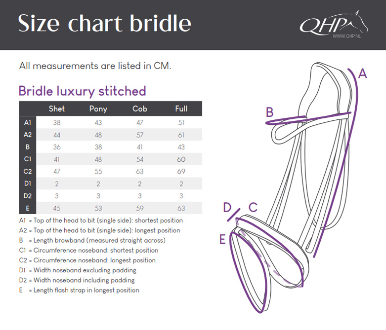 Het Luxury Stitched hoofdstel van QHP is ontworpen met focus op comfort en pasvorm, zonder concessies te doen aan het design. Het model heeft een anatomisch gevormd kopstuk en is voorzien van zachte padding op het hoofdstel, kopstuk en neusriem voor extra comfort. De gecombineerde neusriem heeft een afneembare sperriem.