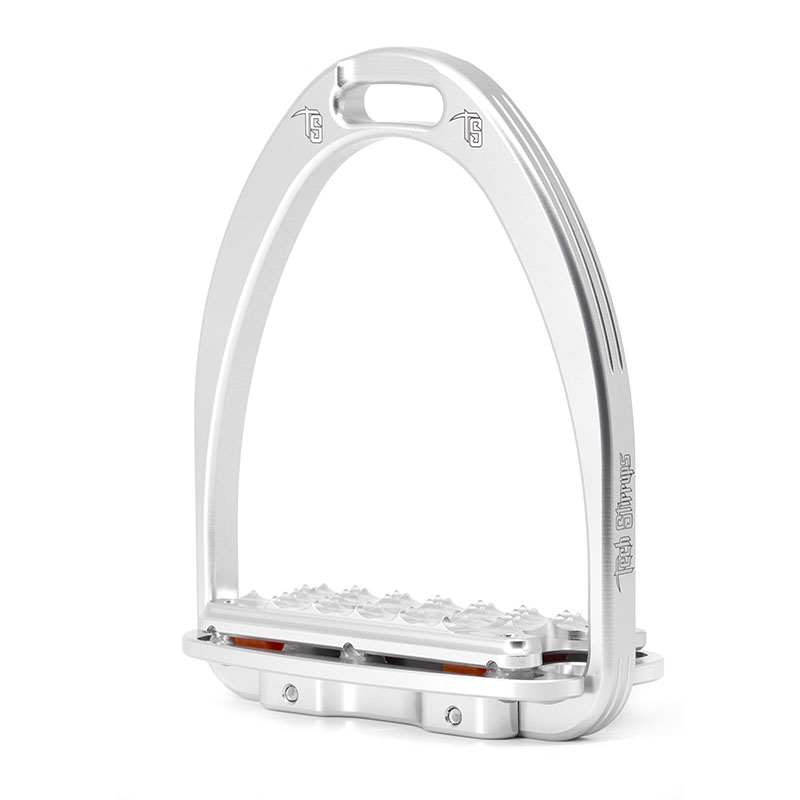 De klassieke stijgbeugels Siena Plus, in deze zilveren uitvoering van Tech Stirrup, zijn gemaakt van hoogwaardig metaal, hebben een van de breedste voetplaten op de markt en bovendien, in tegenstelling tot Siena, ingebouwde schokdemping.