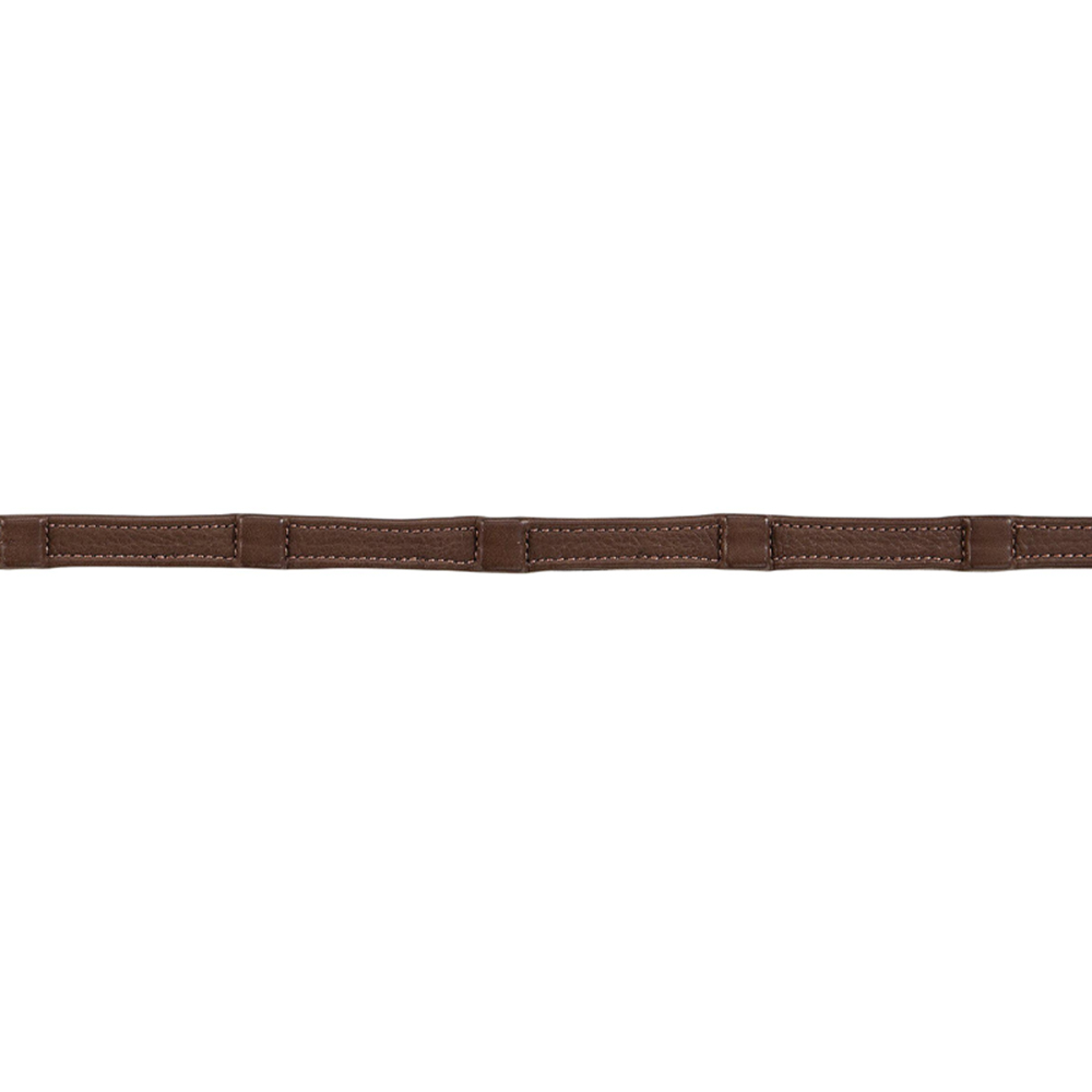 De bruine teugels zijn 15 mm breed en voorzien van zilverkleurige gespen.