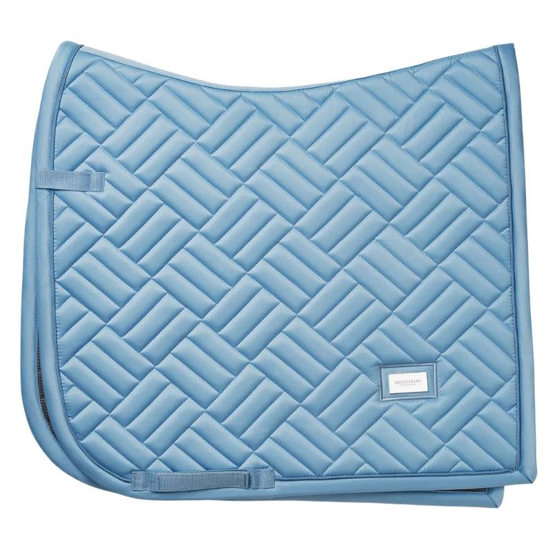 Equestrian Stockholm presenteert het ES Modern dressuurzadeldek in de elegante kleur Midsummer Blue. Dit hoogwaardige zadeldek heeft een modern quiltpatroon en verfijnde zilveren details voor een strakke en stijlvolle uitstraling. De voering bestaat uit 24% bamboe en 76% polyester en heeft temperatuurregulerende eigenschappen. Het helpt te koelen in de zomer en te isoleren in de winter, terwijl het vocht afvoert en snel droogt om het paard comfortabel en droog te houden tijdens het rijden. Het zadeldek is voorzien van klittenbandsluitingen en een singellus voor een stabiele ligging.