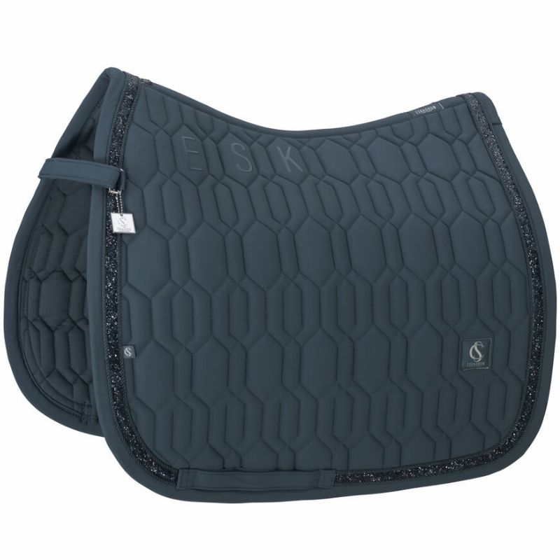 Het Eskadron Dressuurzadeldekje Softshell Jewel Classic Sports in groen combineert elegantie met functionaliteit. De buitenkant is gemaakt van robuust softshell, terwijl de binnenkant een cool-dry voering heeft voor optimaal comfort. De compacte quilting biedt een stijlvol ontwerp, en het siliconen anti-slip oppervlak onder het zadel zorgt ervoor dat het dekje stevig op zijn plaats blijft. Een elegante combinatie van biezen en stenen met softshell-rand voegt een vleugje luxe toe.