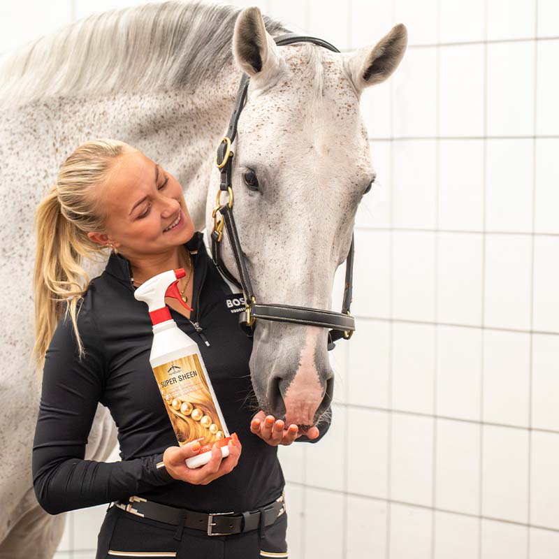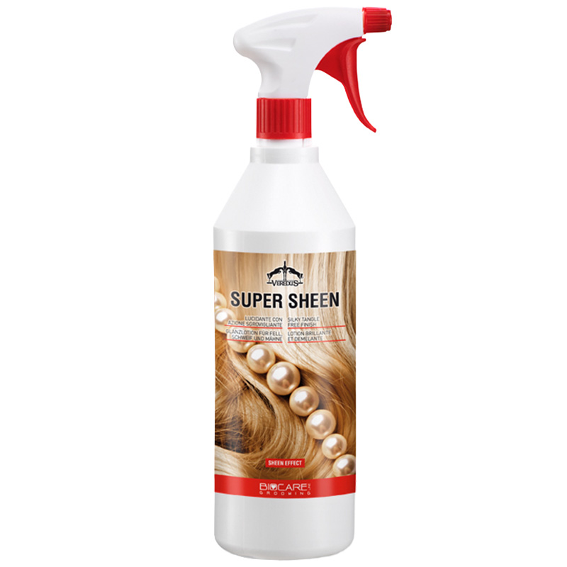 Super Sheen pälsglans van Veredus wat de vacht een fantastische glans geeft en het gemakkelijk maakt om manen en staart te borstelen. Werkt effectief op alle soorten vacht en maakt het glanzend zonder dat het daardoor glibberig en lastig wordt om een zadeldekje en dergelijke te gebruiken. Populaire pälsglans die met voordeel gecombineerd kan worden met de shampoo uit dezelfde serie.