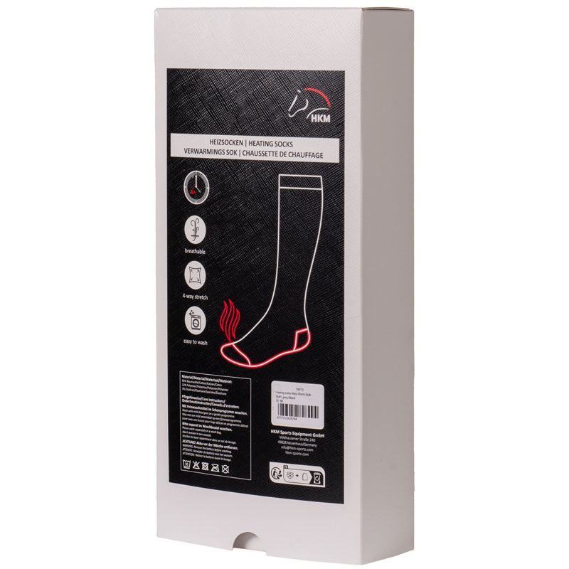 De verwarmde sokken Keep Warm van HKM zijn ideaal voor koude dagen, of je nu in de stal bent of een wandeling maakt. De geïntegreerde verwarmingsfunctie verwarmt gelijkmatig de zool, en een slim ontworpen zak houdt de powerbank veilig op zijn plaats. Met een hoog katoengehalte zijn deze sokken ademend en zacht voor de huid, perfect voor iedereen die veel tijd buiten doorbrengt. Wordt per paar verkocht.