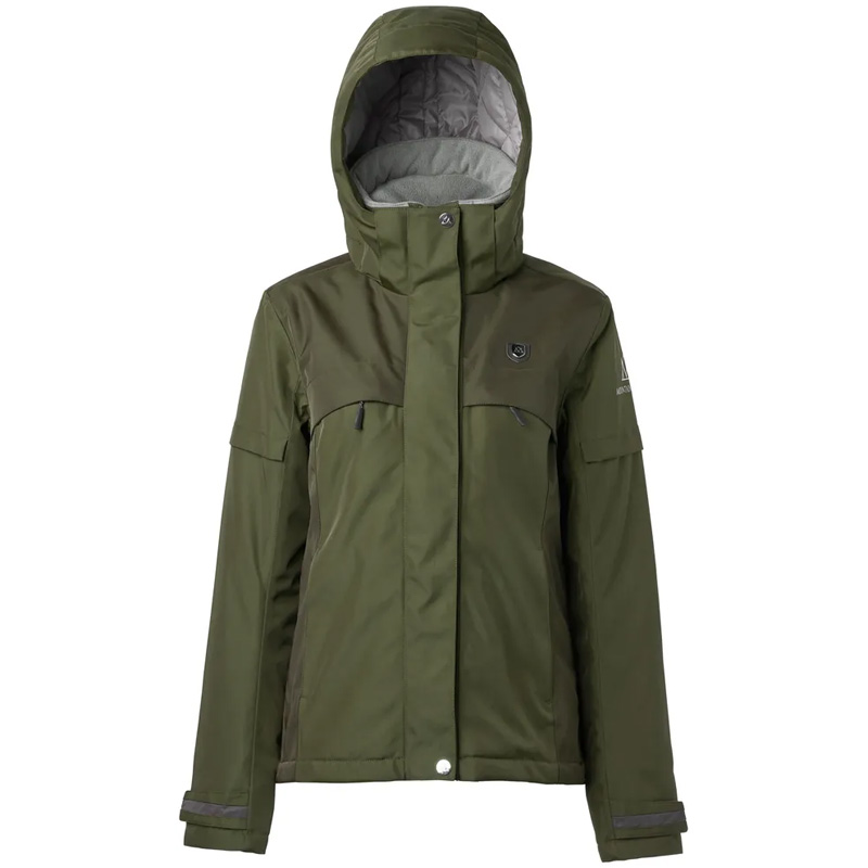 De Mountain Horse Royal Grace Rijjas voor dames in groen is een bijgewerkte versie van hun klassieke rijjas. Het heeft een aantrekkelijke pasvorm en functionele kenmerken die ideaal zijn voor het rijden. De jas is volledig getapet, waterdicht en ademend, wat comfort biedt bij alle weersomstandigheden. Het heeft een 2-weg YKK® hoofdrits voor verstelbaarheid, een afneembare en verstelbare capuchon voor goede zijwaartse zichtbaarheid, verstelbare mouwflap en binnenmanchet voor extra warmte, meerdere veilige zakken en rijopeningen aan de achterkant.