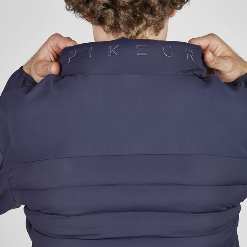 Kenmerkende elementen zoals de ton-sur-ton Pikeur print langs de rand, een Pikeur vlaglabel op de achterkant en een siliconen badge op de mouw onderstrepen het premium karakter van de jas. Een binnenprint benadrukt de functionele eigenschappen. Getest en gecertificeerd voor compatibiliteit met het FREEJUMP AIRBAG veiligheidsvest, is de Pikeur Hybrid Core Jas een betrouwbare en stijlvolle keuze voor actieve ruiters.