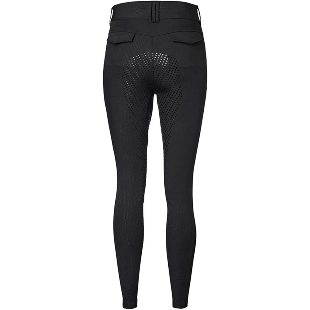 Mountain Horse Rijbroeken Kate Full Seat voor dames in zwart zijn ontworpen voor comfort en functionaliteit. Deze rijbroeken hebben een hoge taille en een volledige zit met MH-grip, wat extra stabiliteit in het zadel biedt. Gemaakt van hoogwaardig, ademend materiaal dat vocht afvoert en bestand is tegen vuil en vloeistoffen. De rijbroeken hebben een discreet MH-logo, dubbele Gutos haak- en lus sluiting, YKK voorrits met automatische vergrendeling, zachte logo elastiek in de tailleband, riemlussen en zes praktische zakken.