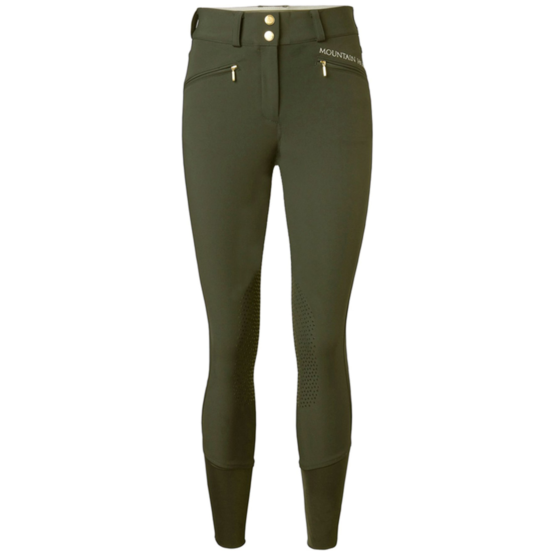 De Mountain Horse Diana Rijbroeken voor dames in groen hebben een hoge taille en knieën met siliconengreep voor optimaal comfort en ondersteuning tijdens het rijden. Gemaakt van hoogwaardig ademend materiaal, voeren deze rijbroeken vocht efficiënt af en zijn ze bestand tegen vuil en vloeistoffen. De dubbele haak- en lus sluiting in de taille zorgt voor een veilige pasvorm, terwijl twee voorzakken met ritssluiting praktische opbergruimte bieden.