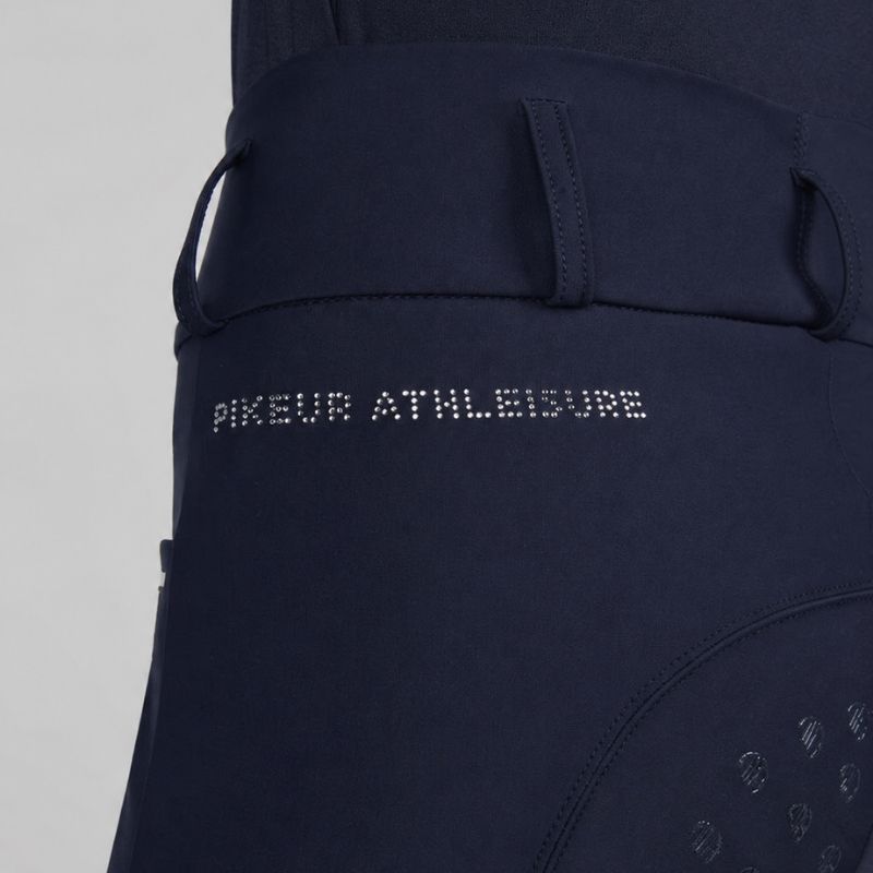 De Pikeur Lilith SD rijlegging voor kinderen en junioren is ontworpen om een comfortabele en stabiele pasvorm in het zadel te bieden. Deze marineblauwe legging heeft een highwaisted ontwerp en is gemaakt van het technische 486 / FlexTech materiaal, dat 4-weg stretch biedt voor hoog comfort en bewegingsvrijheid. Het materiaal is sneldrogend, ademend en heeft UV-bescherming, waardoor het ideaal is voor buitentraining. De volledige zit in GripTec zorgt voor een veilige grip in het zadel, en de brede tailleband in hetzelfde materiaal als de legging draagt bij aan een stabiele pasvorm. De legging heeft ook grote zakken voor mobiele telefoons aan beide zijden en strassdetails op de zakken, samen met een strasslogo aan de achterkant voor een strakke afwerking.
