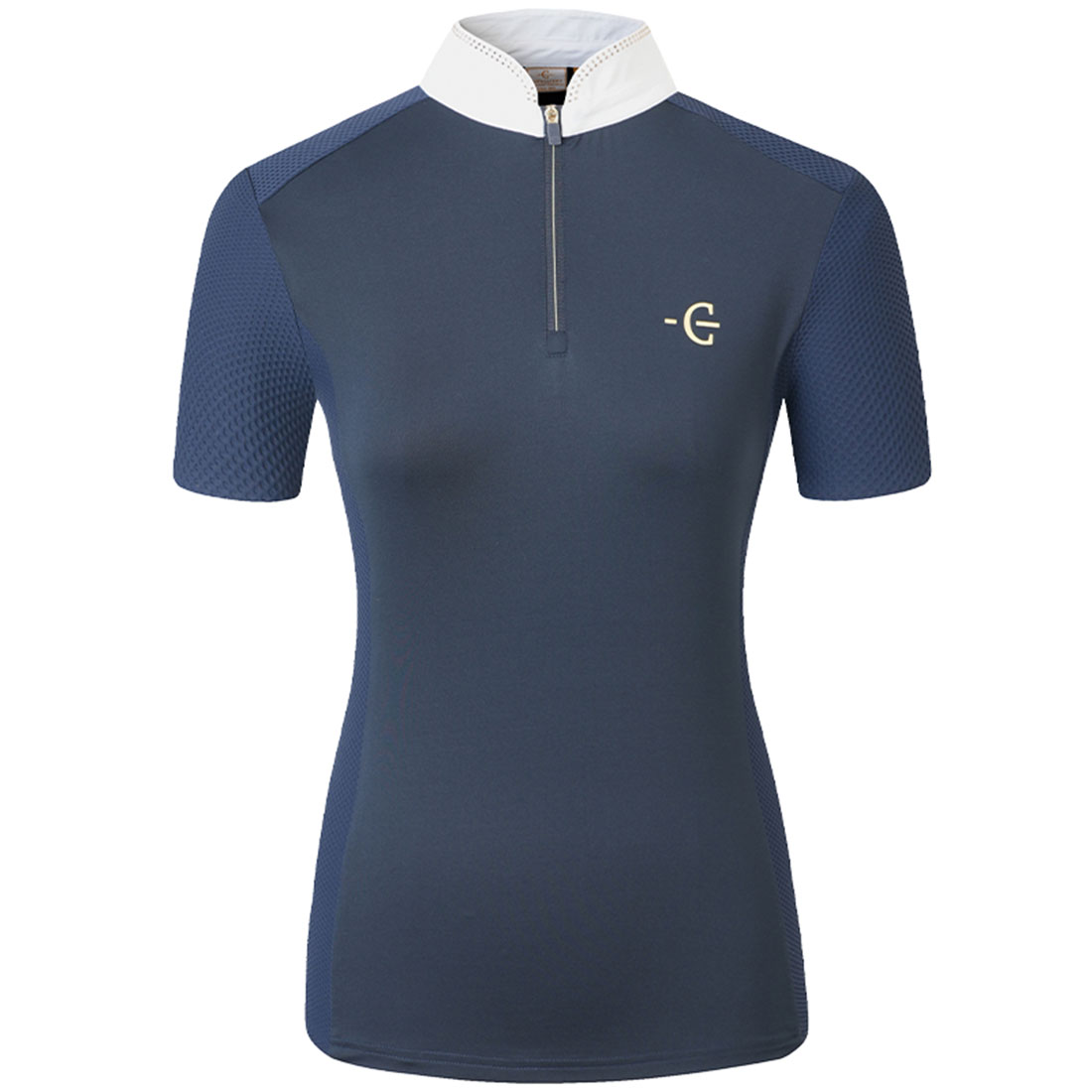 Het Covalliero Wedstrijdshirt Competition Shortsleeve in marineblauw combineert sportieve prestaties met een stijlvol ontwerp. Het ademende, elastische materiaal zorgt voor optimaal comfort en maximale bewegingsvrijheid in het zadel. De elegante hoge kraag met subtiele glitterdetail voegt een vleugje elegantie toe.