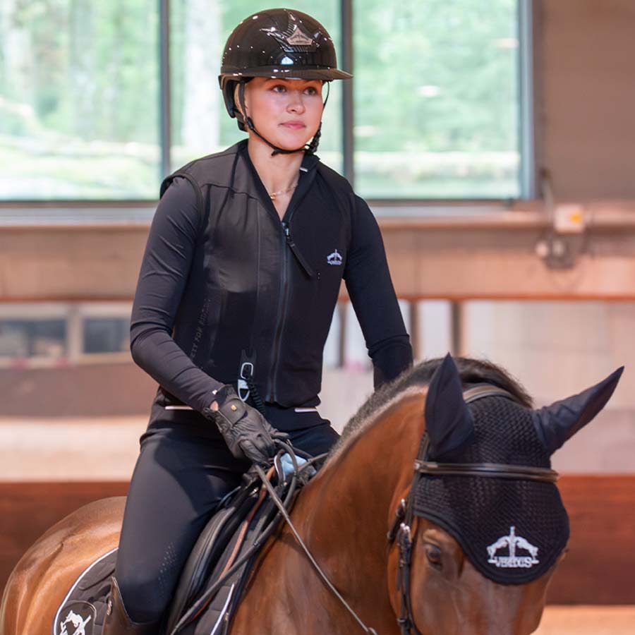 Vergeet niet de vest altijd los te maken van de zadelriem voordat je van het paard afstapt, anders kan de airbag per ongeluk worden geactiveerd.