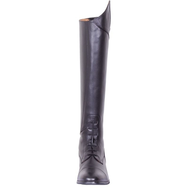 De Diabolo rijlaarzen van By Equality Line combineren een klassieke en strakke vormgeving met praktische eigenschappen. Deze zwarte laarzen zijn gemaakt van ademend anilineleer en gevoerd met kalfsleer voor extra comfort. De PU-binnenzool zorgt voor een comfortabel gevoel tijdens het rijden. Aan de achterkant bevindt zich een spoorsteun met twee standen die de sporen stevig op hun plaats houdt. Een extra sterke ritssluiting over de gehele lengte en stevige elastiek aan de achterkant zorgen voor stabiliteit en bewegingsvrijheid.