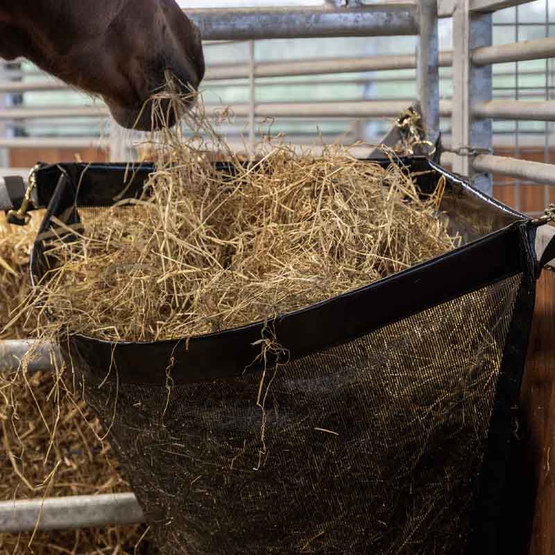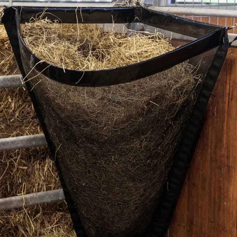 - Onderste opening zorgt dat het paard al het hooi kan bereiken