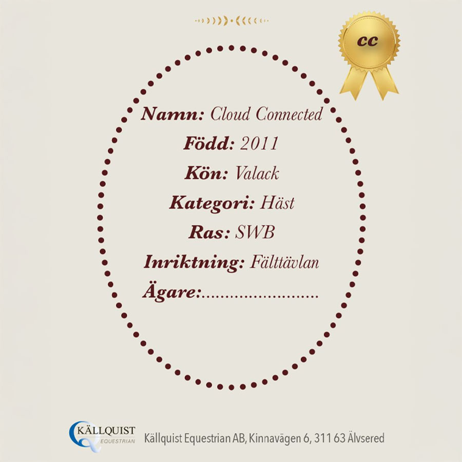 Cloud Connected is een grijs stokpaard met een witte bles, gebaseerd op het Zweeds Warmbloed ras. Het stokpaard is gemaakt van polyester, met een manen en voorpluk van garen die gemakkelijk te vlechten zijn. De stok is gemaakt van espenhout, een lichtgewicht houtsoort die zorgt voor een goede balans tijdens het gebruik.