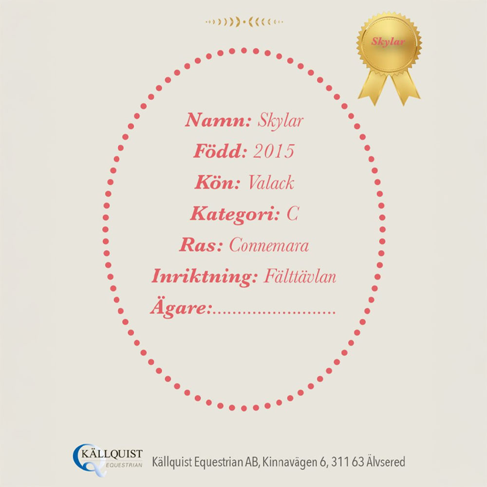 Skylar is een grijs stokpaard, gebaseerd op het Connemara-ras. Het stokpaard is gemaakt van polyester, met een manen en voorpluk van garen die gemakkelijk te vlechten zijn. De stok is gemaakt van espenhout, een lichtgewicht houtsoort die zorgt voor een goede balans tijdens het gebruik.