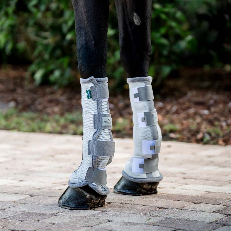 Horseware grijze Fly Boots zijn lichte en ademende vliegenbeschermers die helpen de benen van het paard te beschermen tegen vliegen, bijtende insecten en UV-straling. Ze zijn gemaakt van een 3D-constructie van polyester mesh die zorgt voor goede luchtcirculatie en een koel gevoel rond de benen.